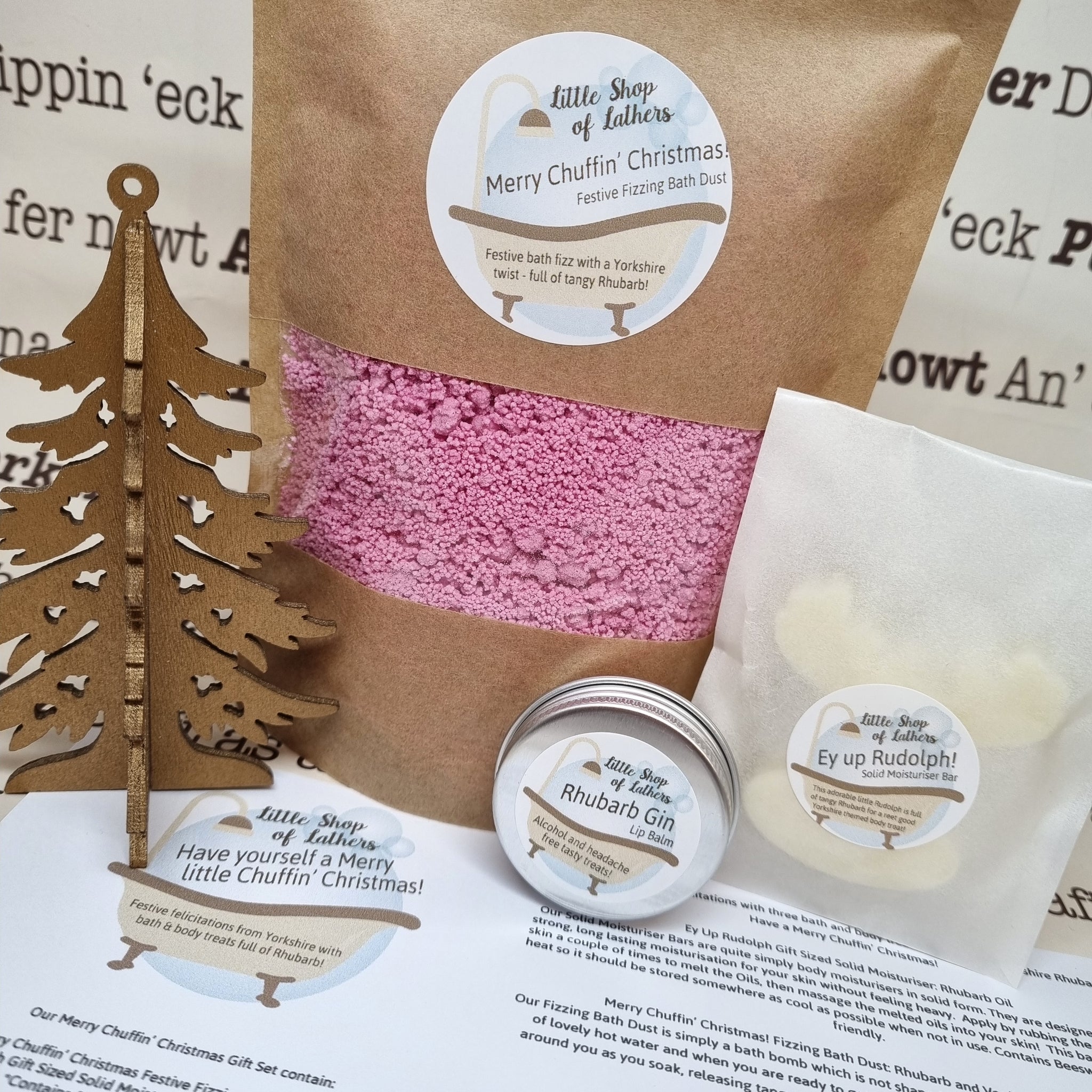 Send Yorkshire festive felicitations in style with three bath and body treats chock full of Yorkshire Rhubarb – Have yourself a Merry Little Chuffin’ Christmas!