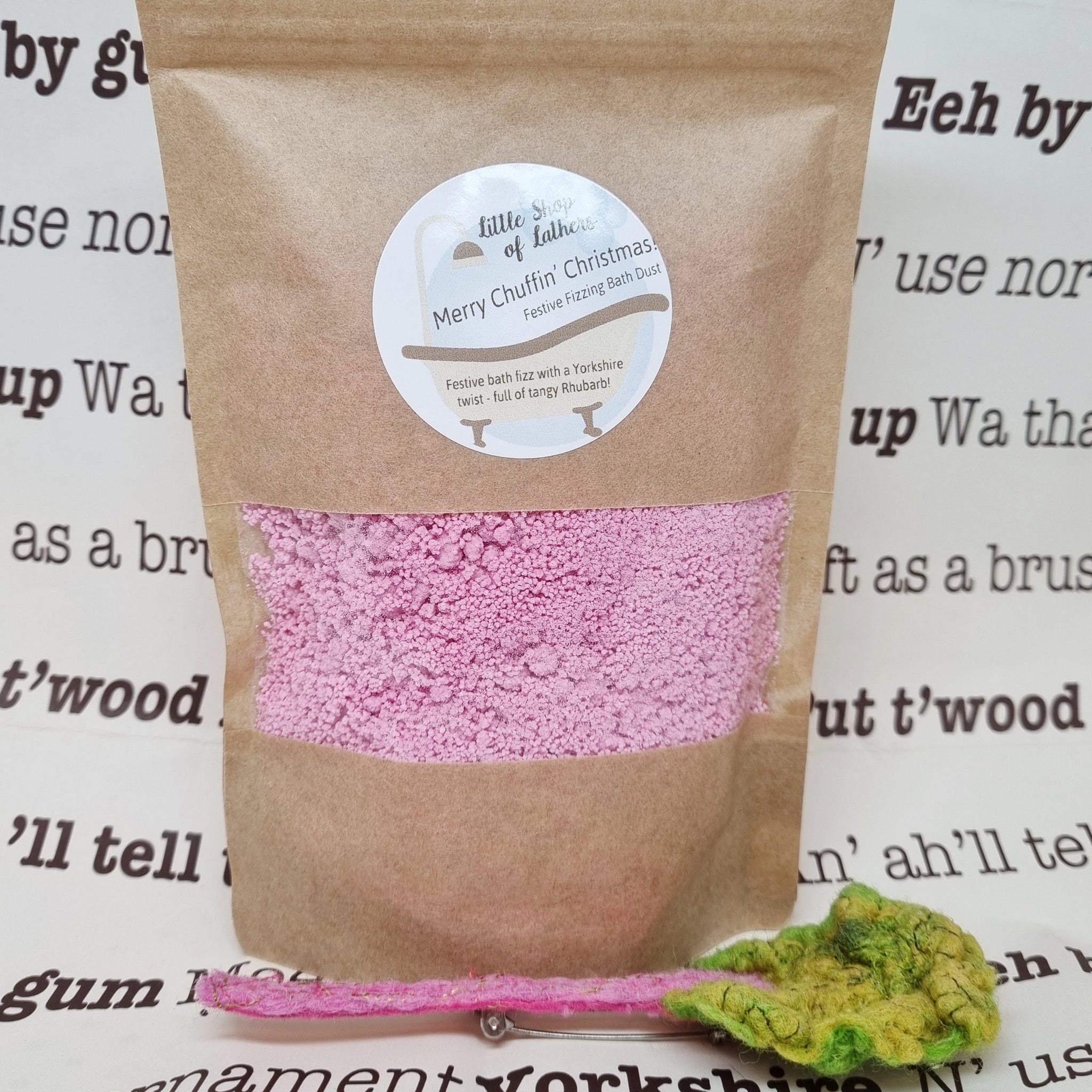Our Tangtastic! Bath Fizz has had a festive makeover! Say Ey up to Merry Chuffin' Christmas, a cheeky little Yorkshire themed Aromatherapy pampering package - proper festive Fizz Yorkshire styleeee, full of tangy Rhubarb - by 'eck it's reyt good!
